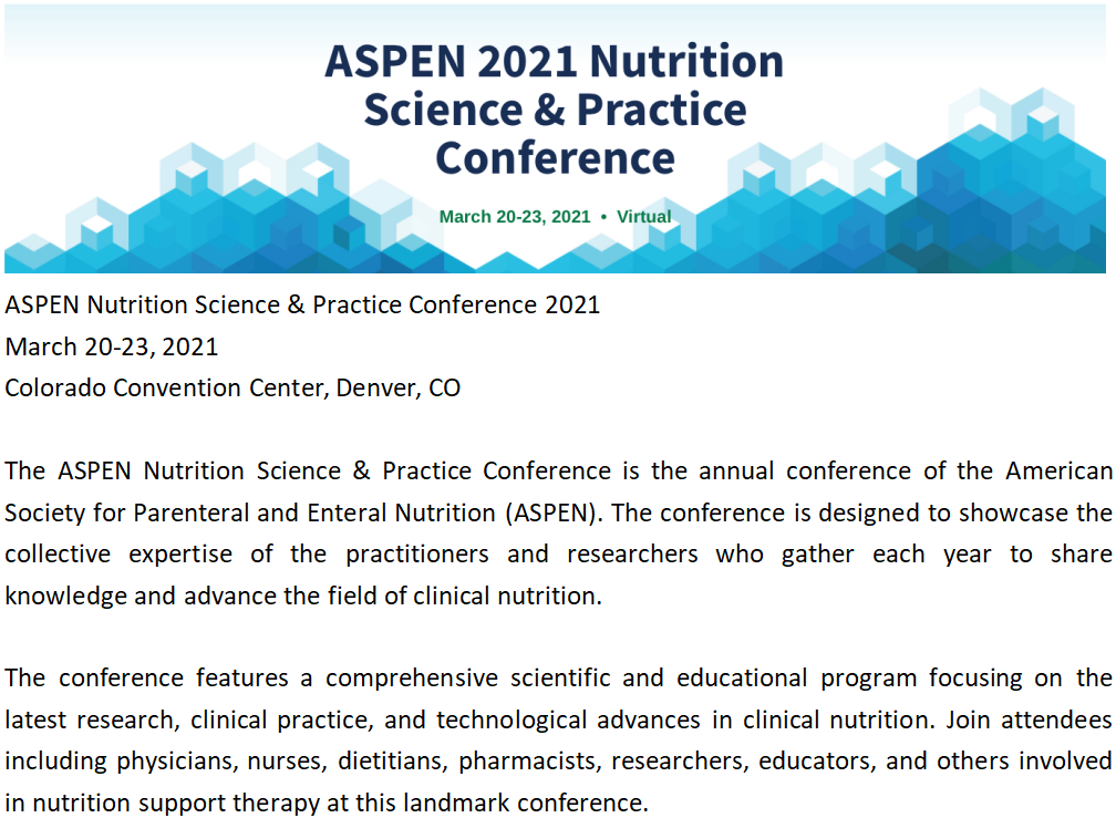 Online conference channel click:https://www.nutritioncare.org/conference/